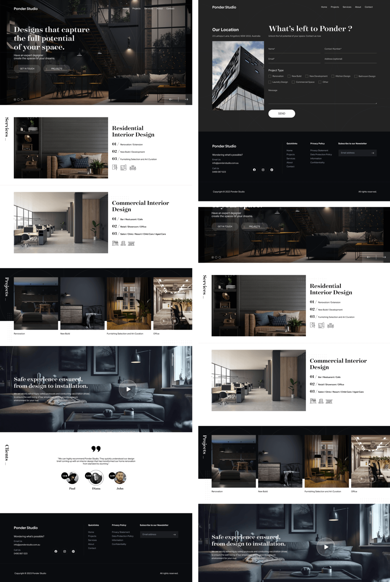 We were handed the intriguing task of visually capturing the essence of Ponder Studio. Ponder Studio, an acclaimed interior architecture and design studio, prides itself on crafting unique spatial experiences. My mission? To design a digital platform that does justice to their finesse.
